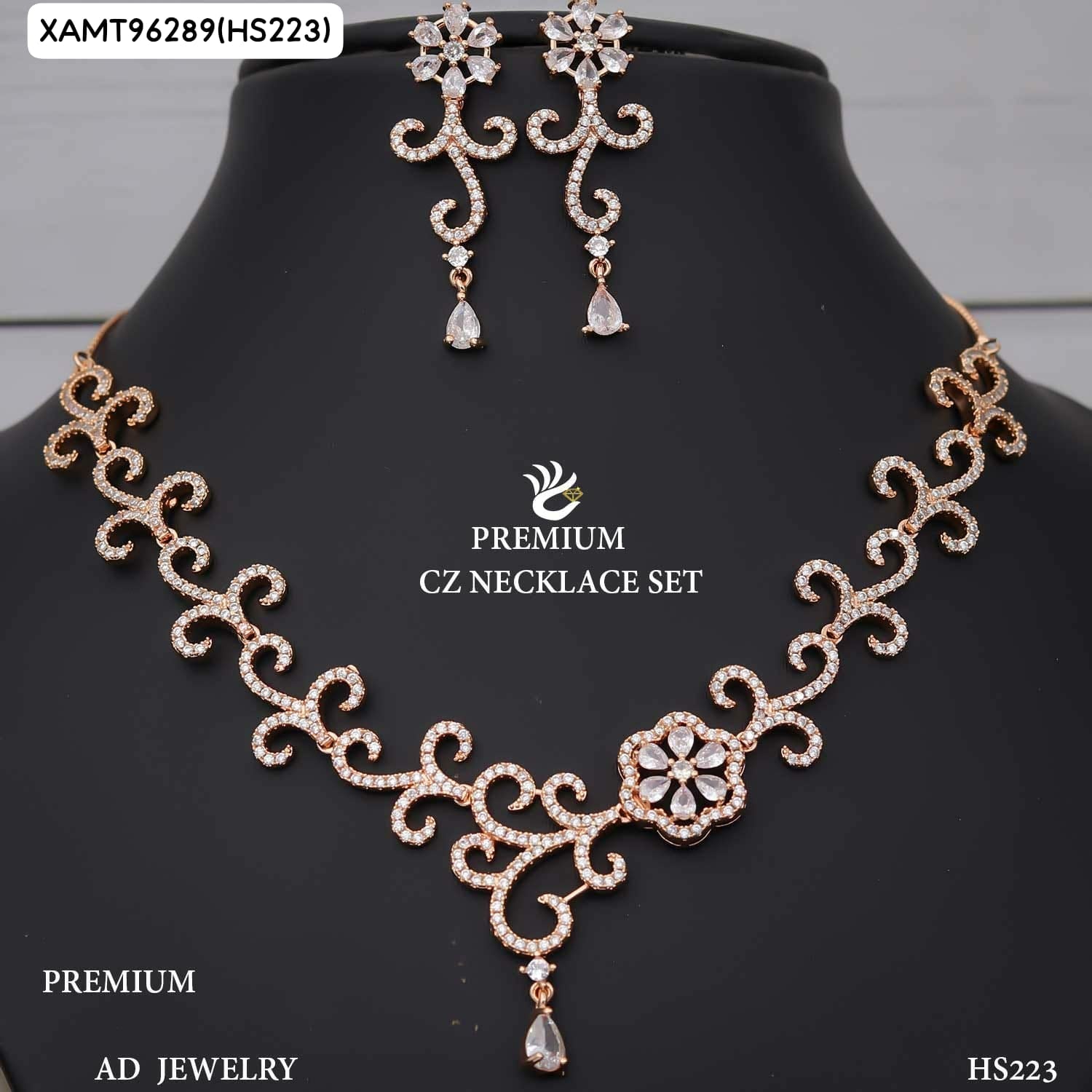AD ROSE GOLD NECKLACE WITH EARRINGS HS223