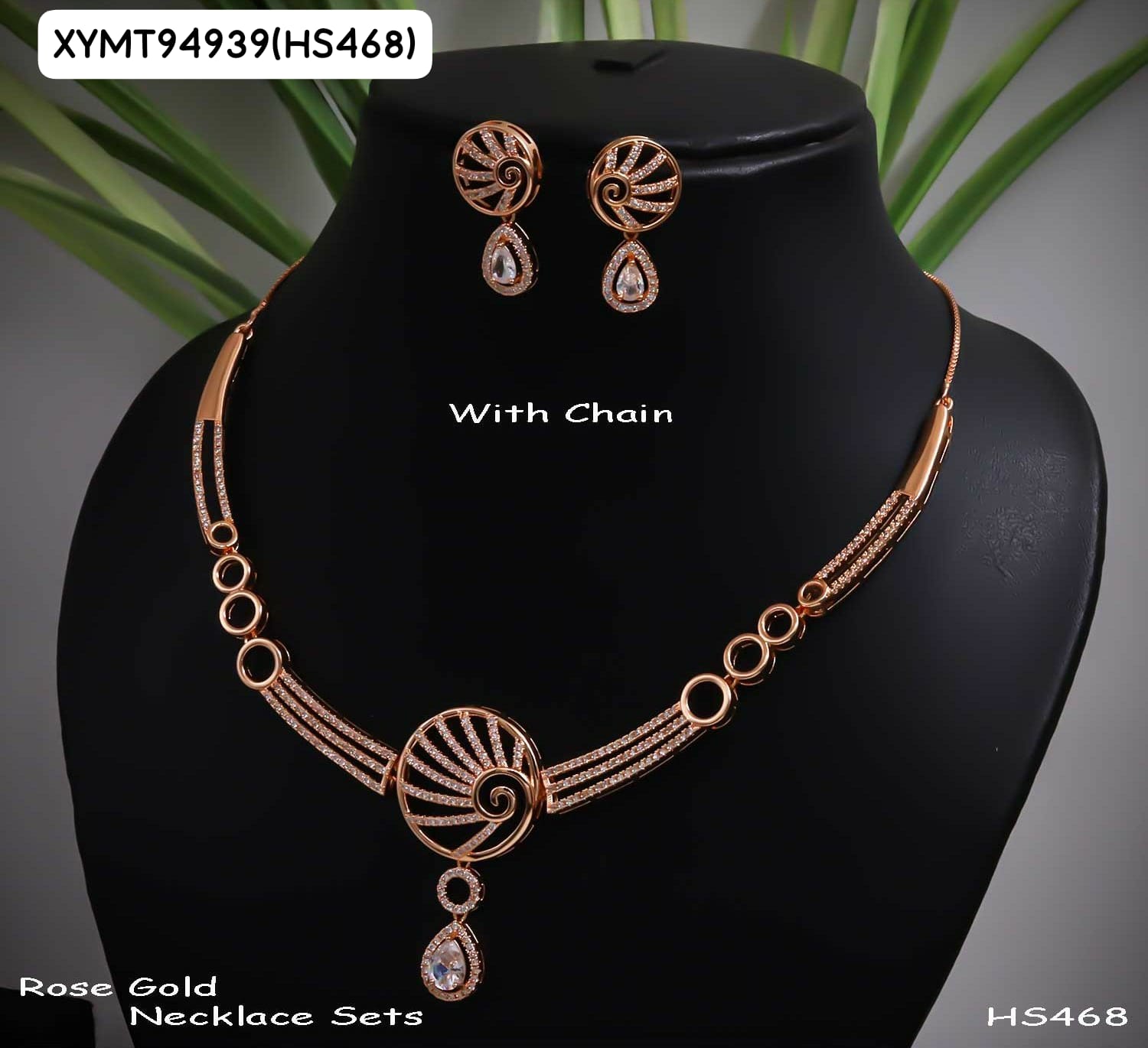 AD ROSE GOLD NECKLACE WITH EARRINGS HS4689