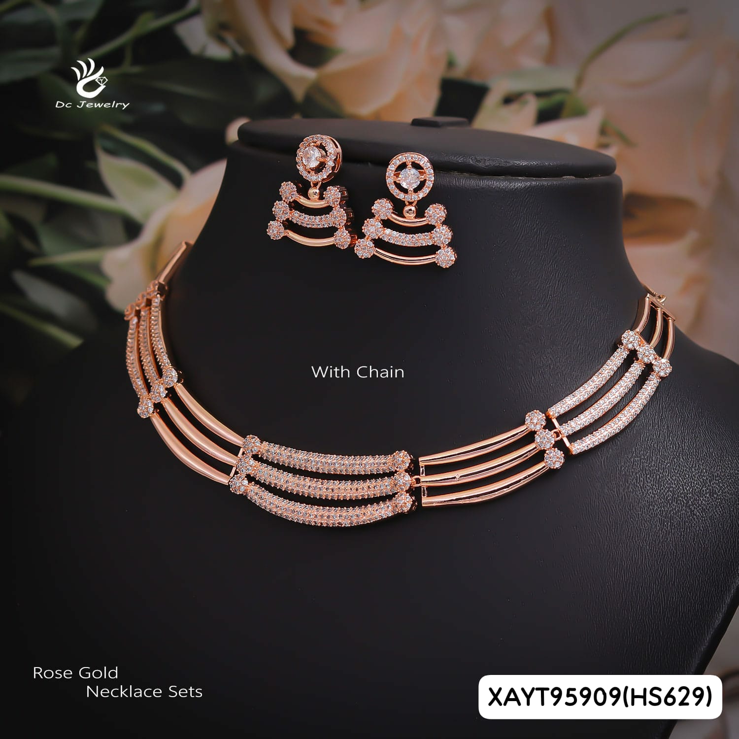 AD ROSE GOLD NECKLACE WITH EARRINGS HS629