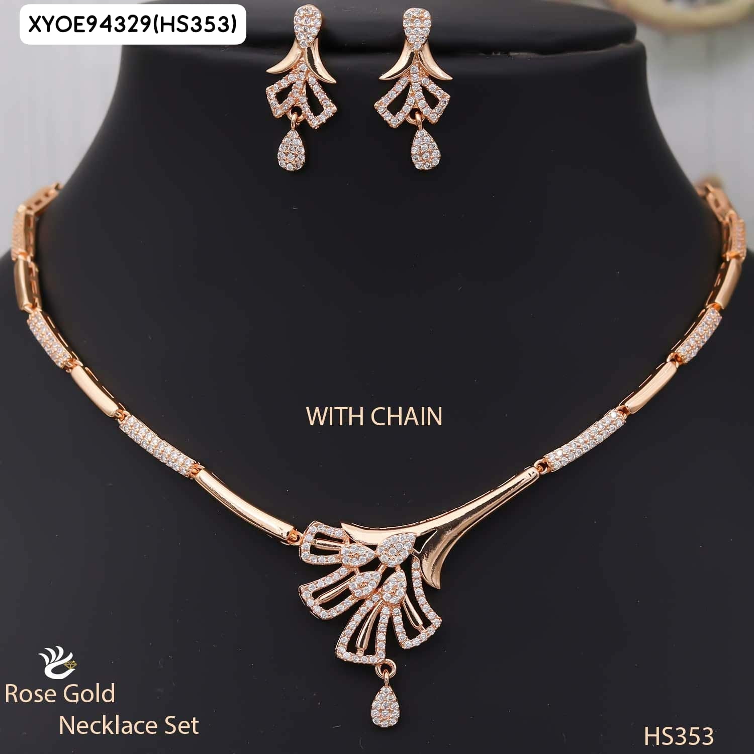 AD ROSE GOLD NECKLACE WITH EARRINGS HS353