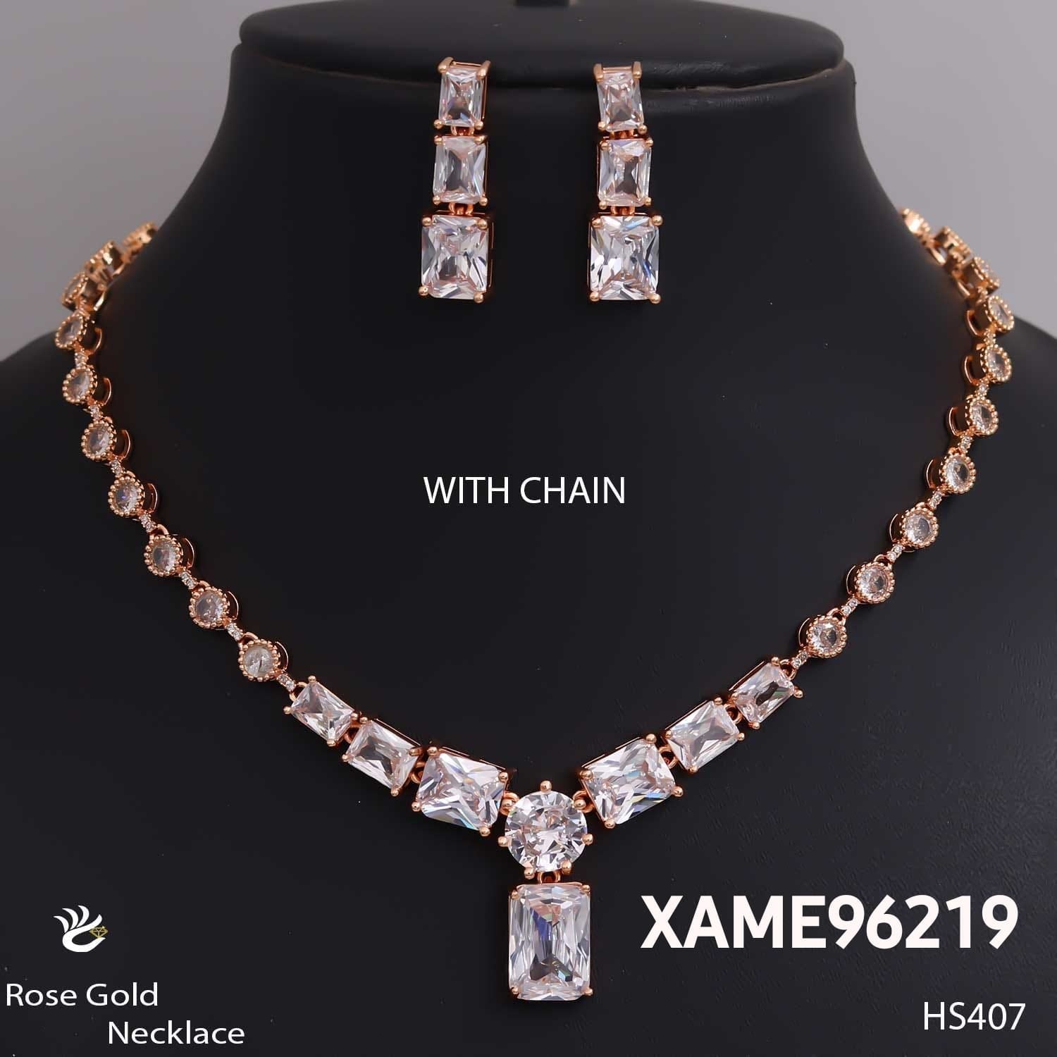 AD ROSE GOLD NECKLACE WITH EARRINGS HS407
