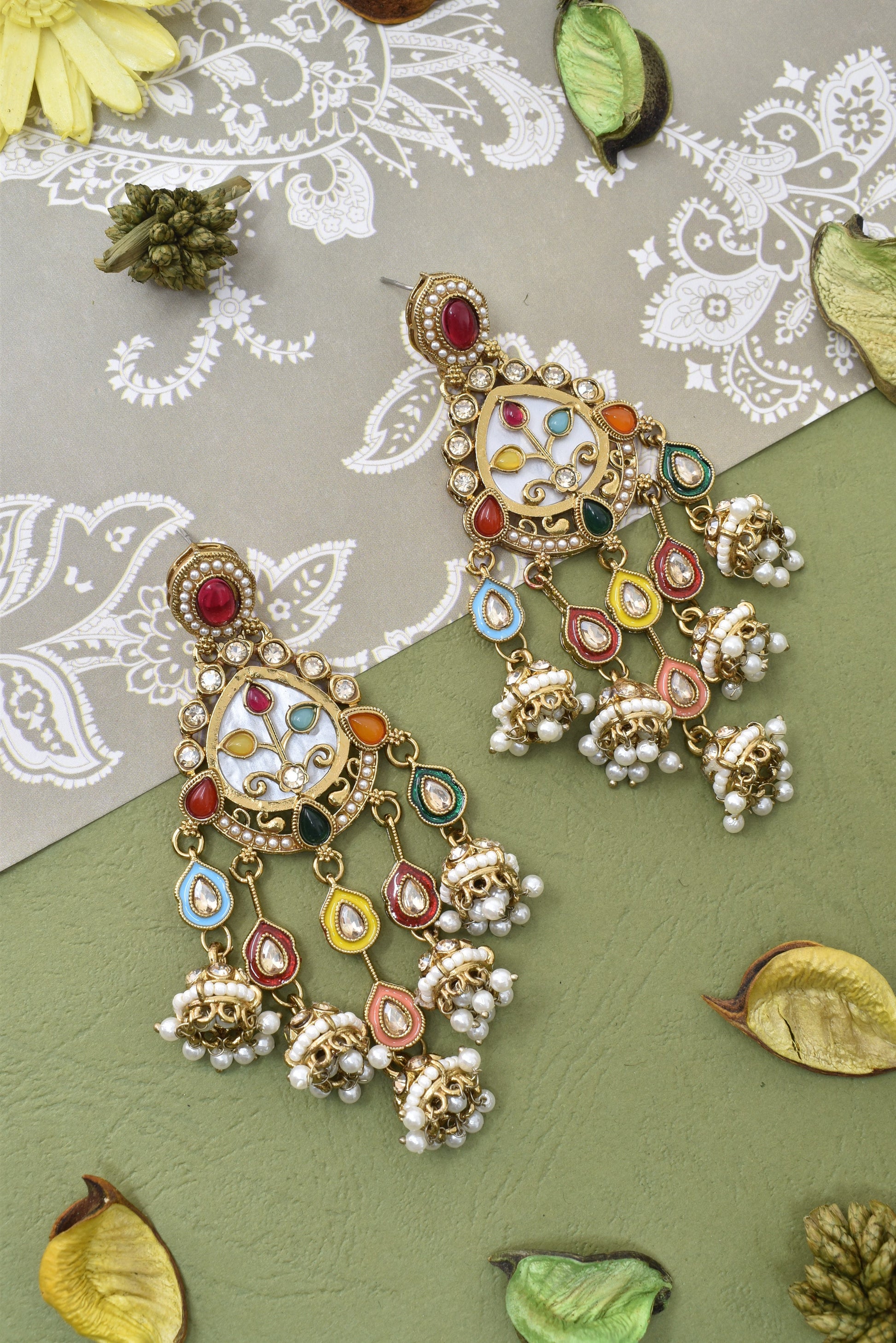 Partywear-earrings,chandeliar,partywear,Kashmiri earring-EAR-HDB-E493-MLT