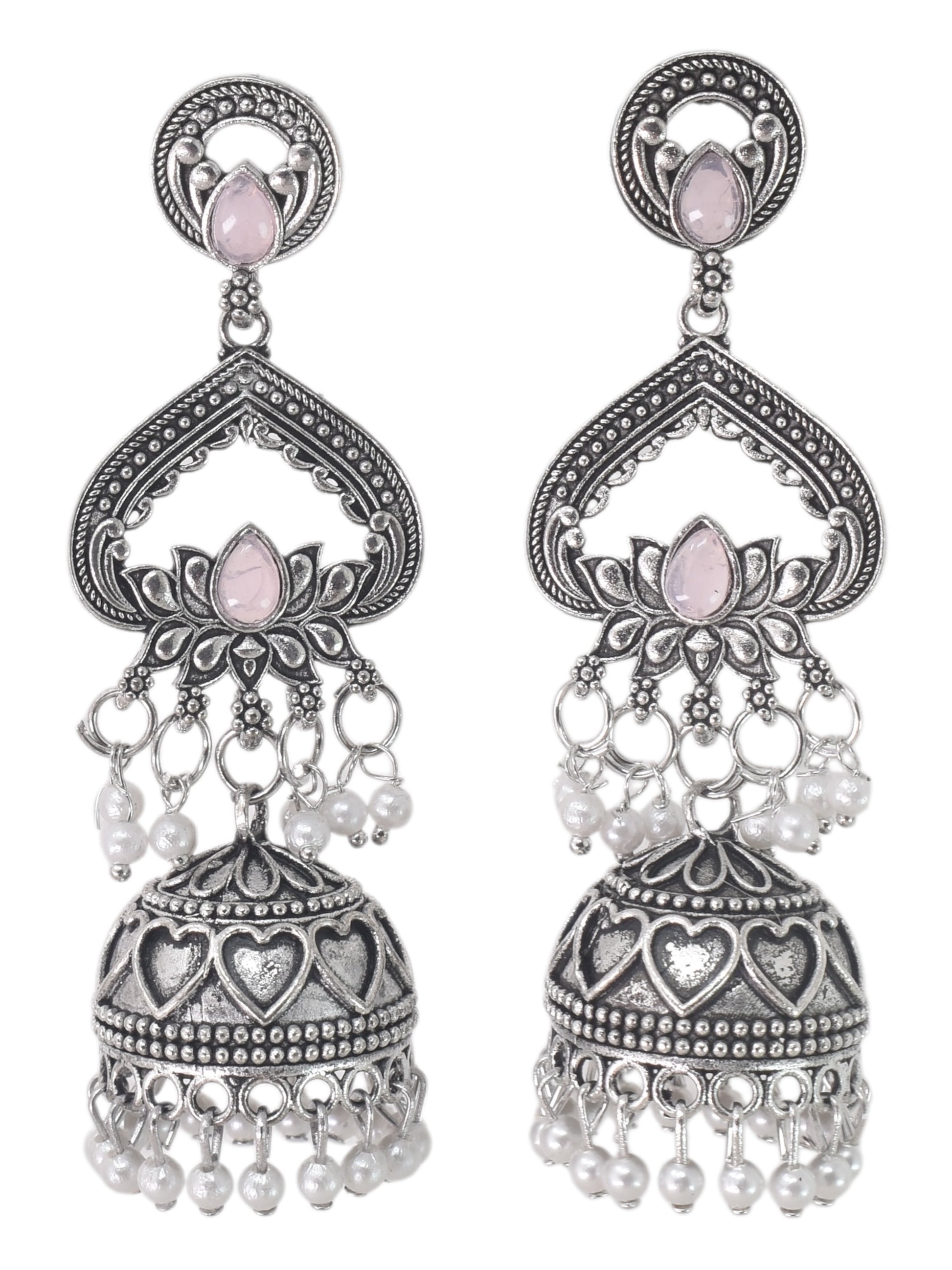 Partywear-earrings,chandeliar,partywear,Kashmiri earring,JHUMAR-OXOJMK-JRV-3STP-LOTUS-LVDR