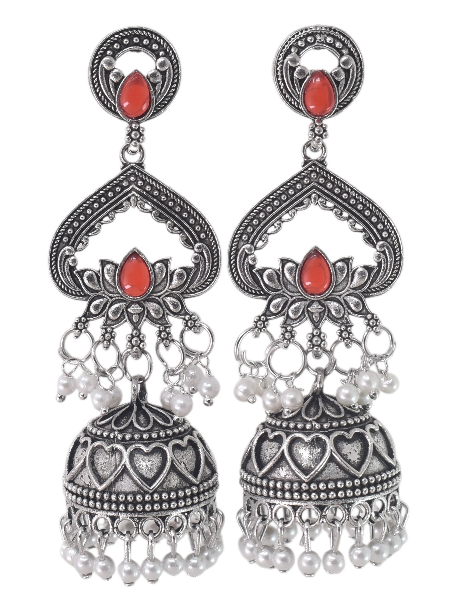 Partywear-earrings,chandeliar,partywear,Kashmiri earring,JHUMAR-OXOJMK-JRV-3STP-LOTUS-RED